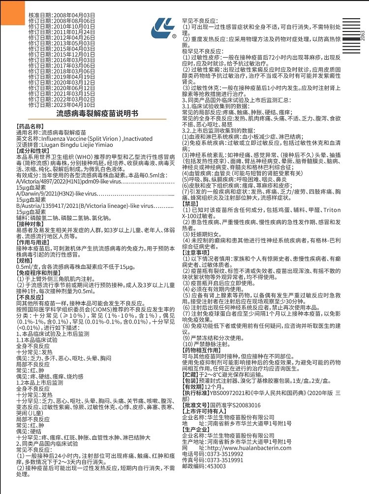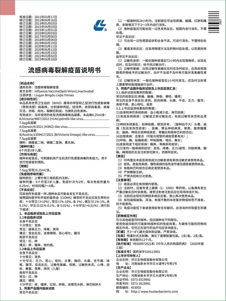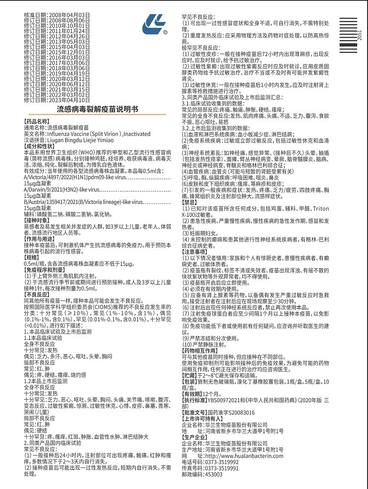 流感病毒裂解疫苗